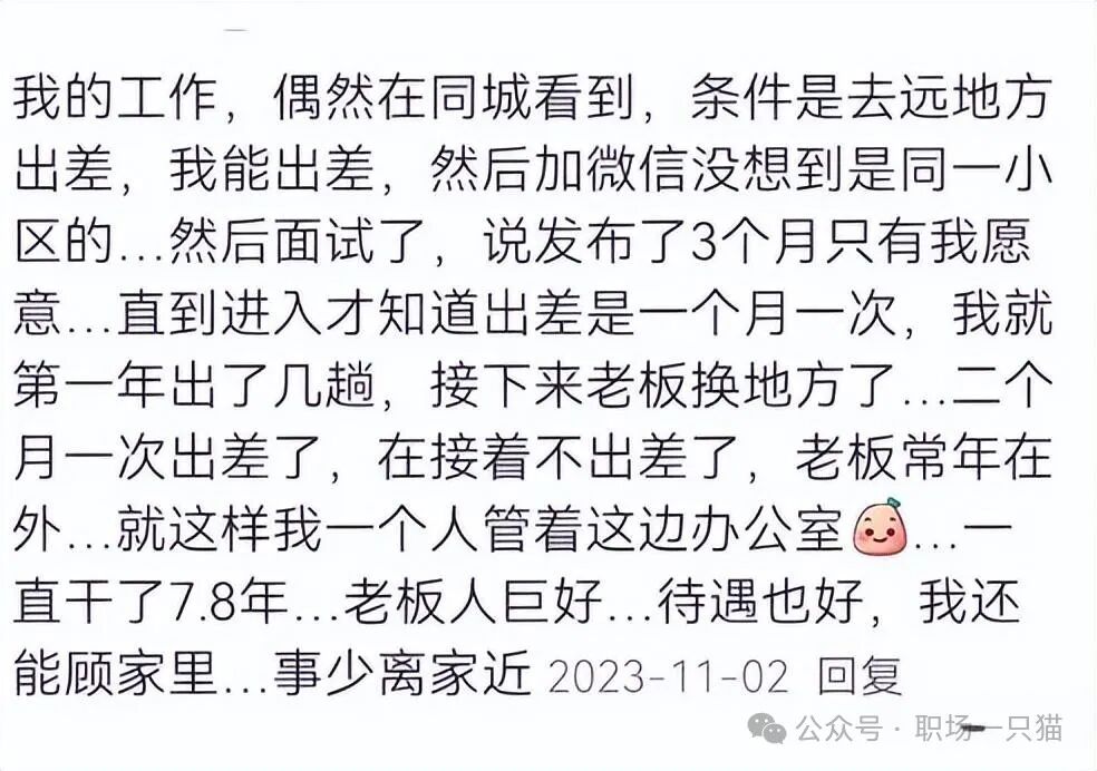 网友6:离家近,事儿少,工资高,这样的工作不好找。