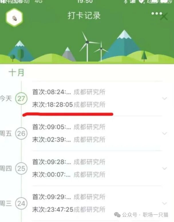 从华为员工的打卡记录上看得出来,基本上每天都加班到十一二点才能到下班回家休息,仔细看唯一一天最 早六点多下班还是星期六。