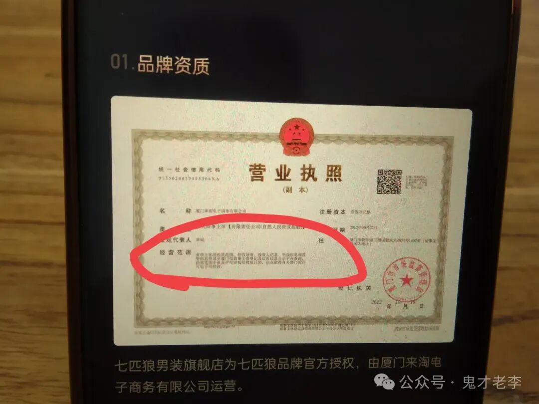 第8,看该商品是否在店铺的经营范围以内,我们在这个营业执照这里就能够看到。如果我们选择的产品,超出经验范围,千万不要购买(如上图所示)