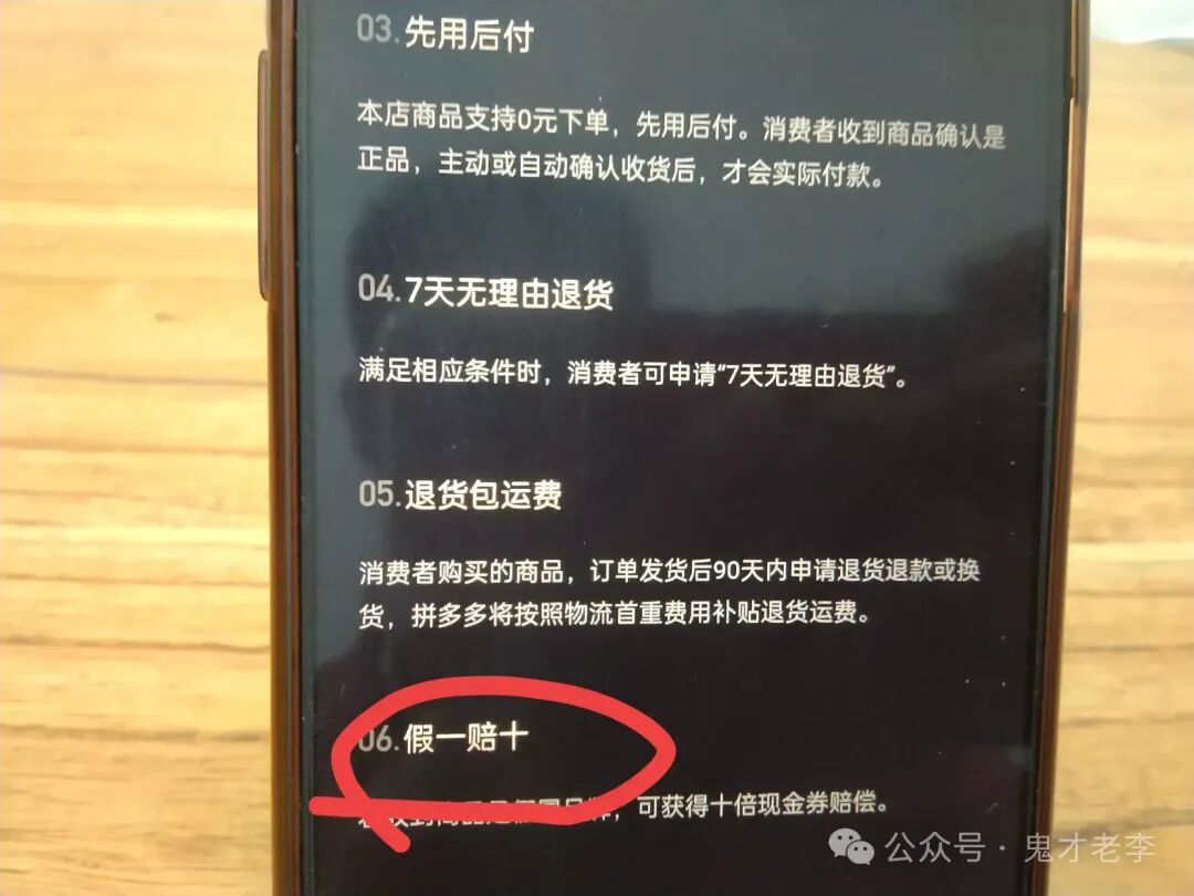 那么这个假一赔十也同样的重要,假如你在封面标注着百亿补贴或者品牌又或者正品,为何不敢在这里保障假一赔十呢?