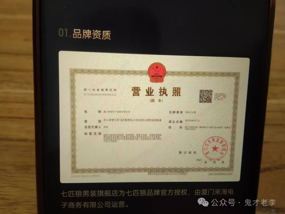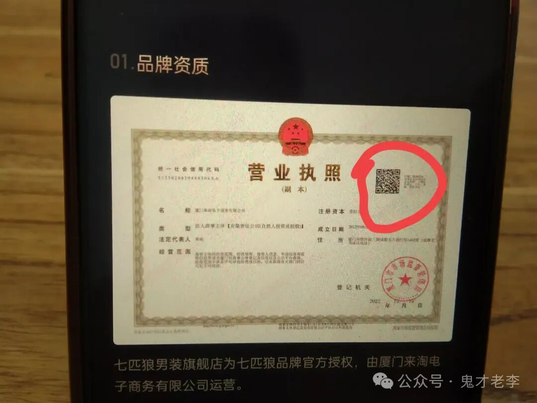 那么第7就是看该商品的店铺是否有资质,在这里我们就能够看到了,这里就它是有营业执照了,在这里有一个二维码,我们还可以扫码观看。(如上图所示)