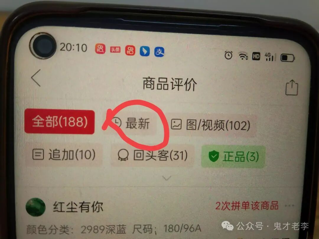 所以看差评是最合适的,如果没有差评可看的话,那么我们就点击查看最新评论,因为其他的评论话,有可能商家和买家之前经过沟通,某些人已经撤回了这个差评,我们点击最新的看一下他们反馈的问题是否你担心的,如果有担心的话,我们尽量不要去购买。