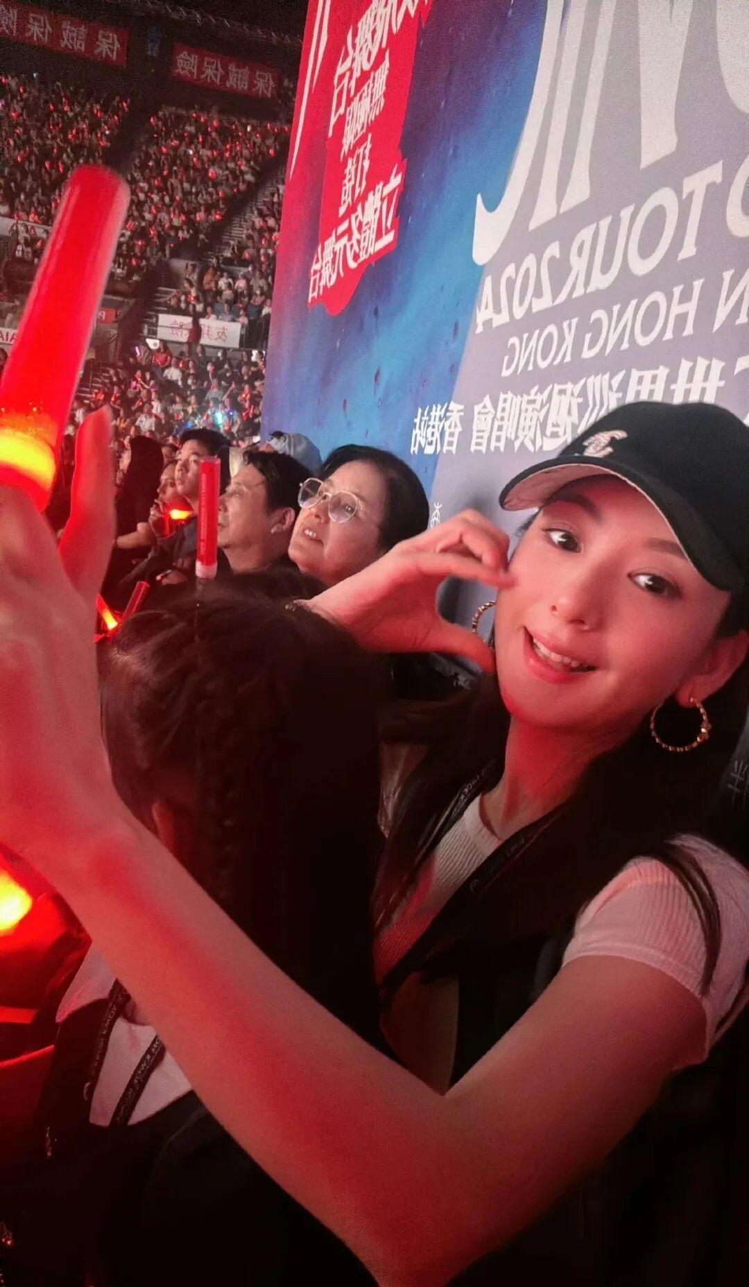 演唱会刚开始不久,就有眼尖的粉丝发现了方媛和两个女儿的身影。她们坐在VIP区,完全没有遮掩,大方地接受着大家的目光。
