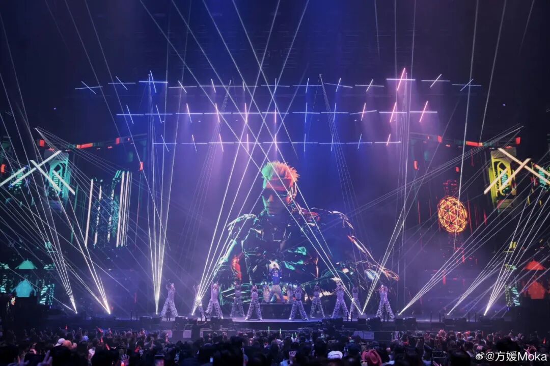 方媛在社交媒体上分享了几张现场照片,并激动发文称赞老公的演唱会是“good show”,后面会爱附上了超多的“棒”的表情。