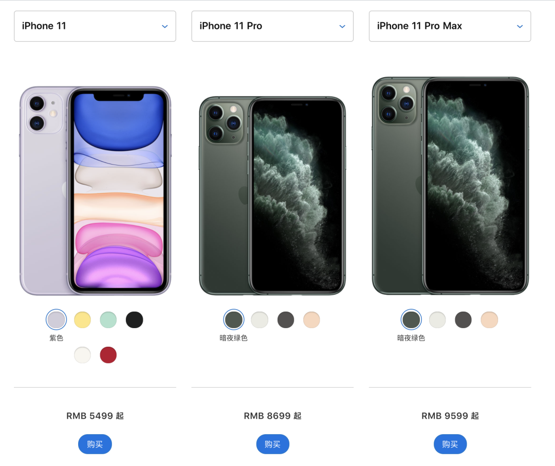 苹果也是玩儿价格锚定的一把好手。以手机为例,苹果极善于同时发布多款系列产品:比如把IPhone11 max pro定在1099美金,制定高锚点,维持产品调性。同时推出售价仅为699、799美金的IPhone 11 pro、IPhone 11捕捞更广范围的受众。