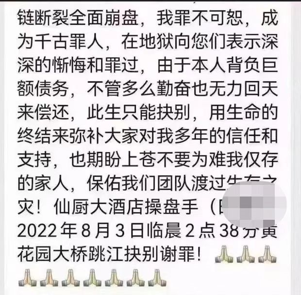 心灰意冷的他却从100多米的黄花园大桥一跃而下结束了生命,留下了无助的妻儿和一堆无法偿还的债务。