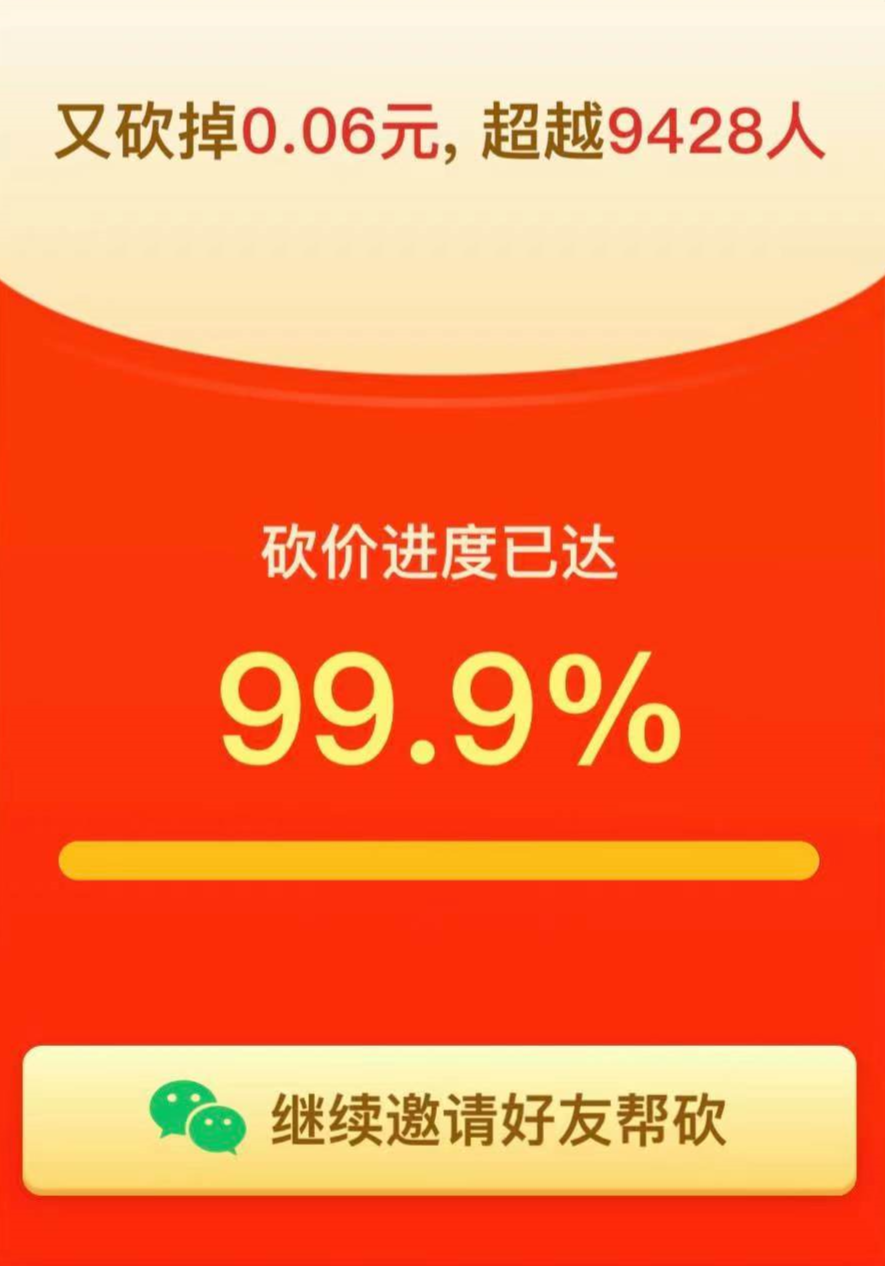 靠砍价拉人头,一开始砍得容易,之后越来越难,最后你永远不知道从99.9到100之间相隔了多少个小数点……