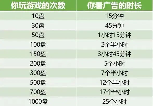 一把游戏30秒,使用一个道具需要看10秒的广告,4个道具就是40秒,也就是每玩50次,就要看75分钟的广告!