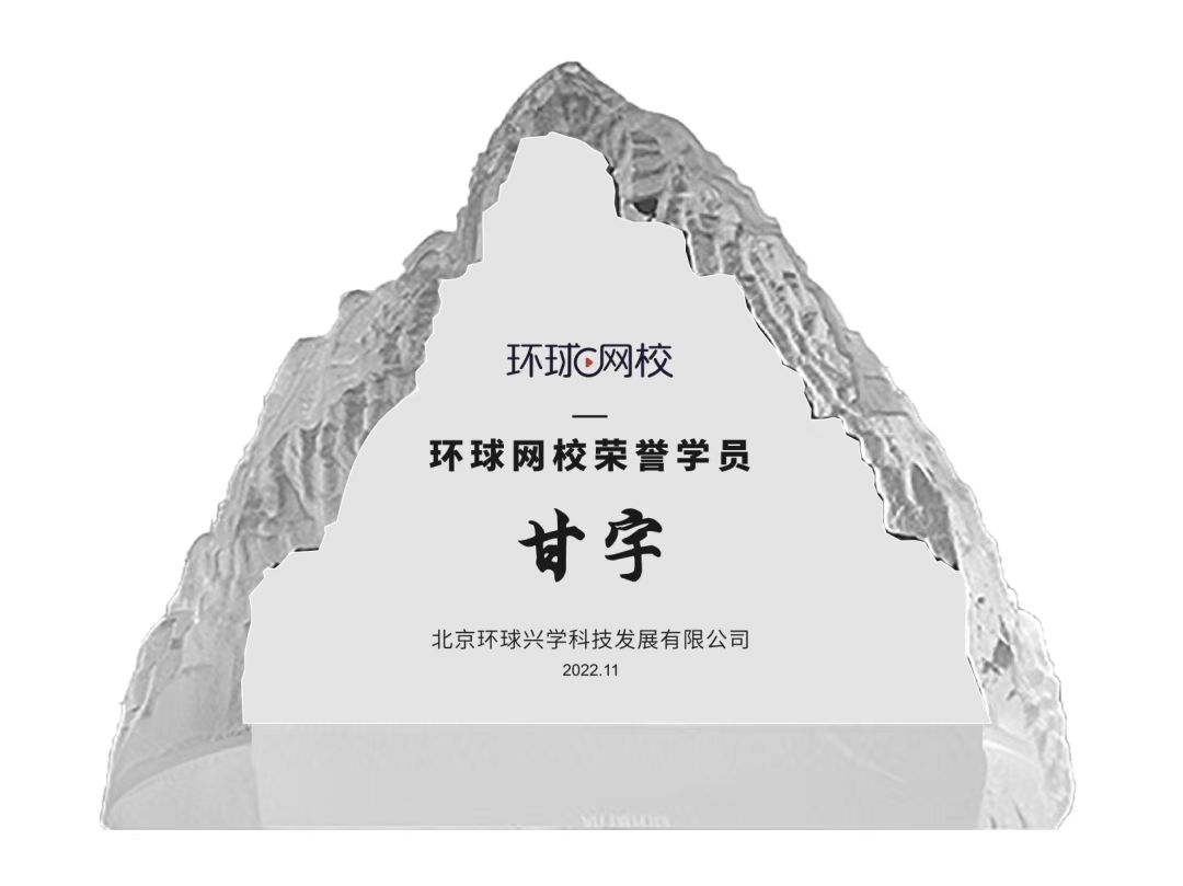 对此,我专门向环球网校建议,为甘宇颁发了荣誉学员奖项,并且为他退还学习费用。