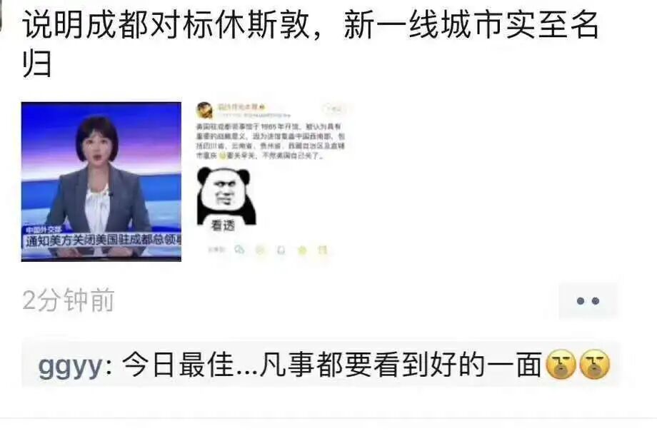 在成都前线的我可以负责任的告诉大家,前线人民“情绪稳定”,甚至有点欢欣鼓舞。