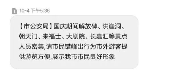 去年,洪崖洞在抖音大火,重庆一跃成为网红城市。十一期间,重庆政府特地发短信给市民,提示“错峰出行”,给外地游客留出游玩的空间。