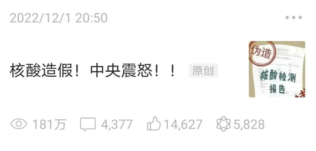 前两天斗胆写了一篇核酸造假的文章,猜测着能存活多久,没想到不仅没被删文,还被阅读接近200万人次。