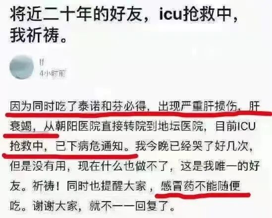 前几天有人说自己的好友,因为同时吃了芬必得和泰诺,出现了严重的肝衰竭,进入ICU医院,现在都已经下了病危通知书。