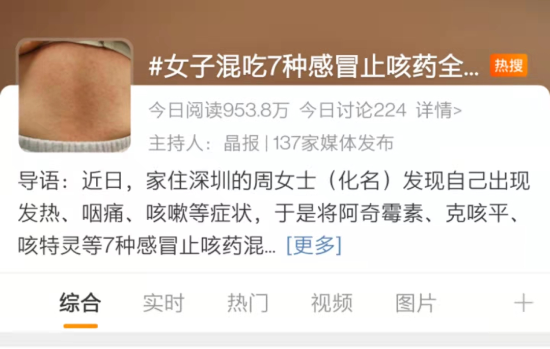 还有一女子混吃、乱吃7种感冒止咳药,以为能加强药效预防新冠,结果导致全身长满了脓包。