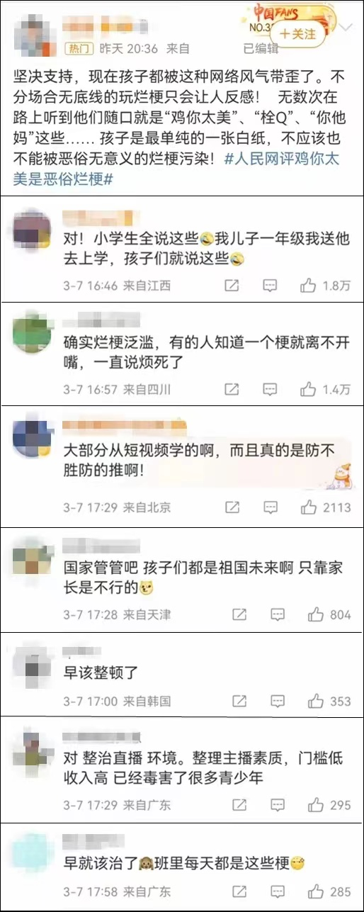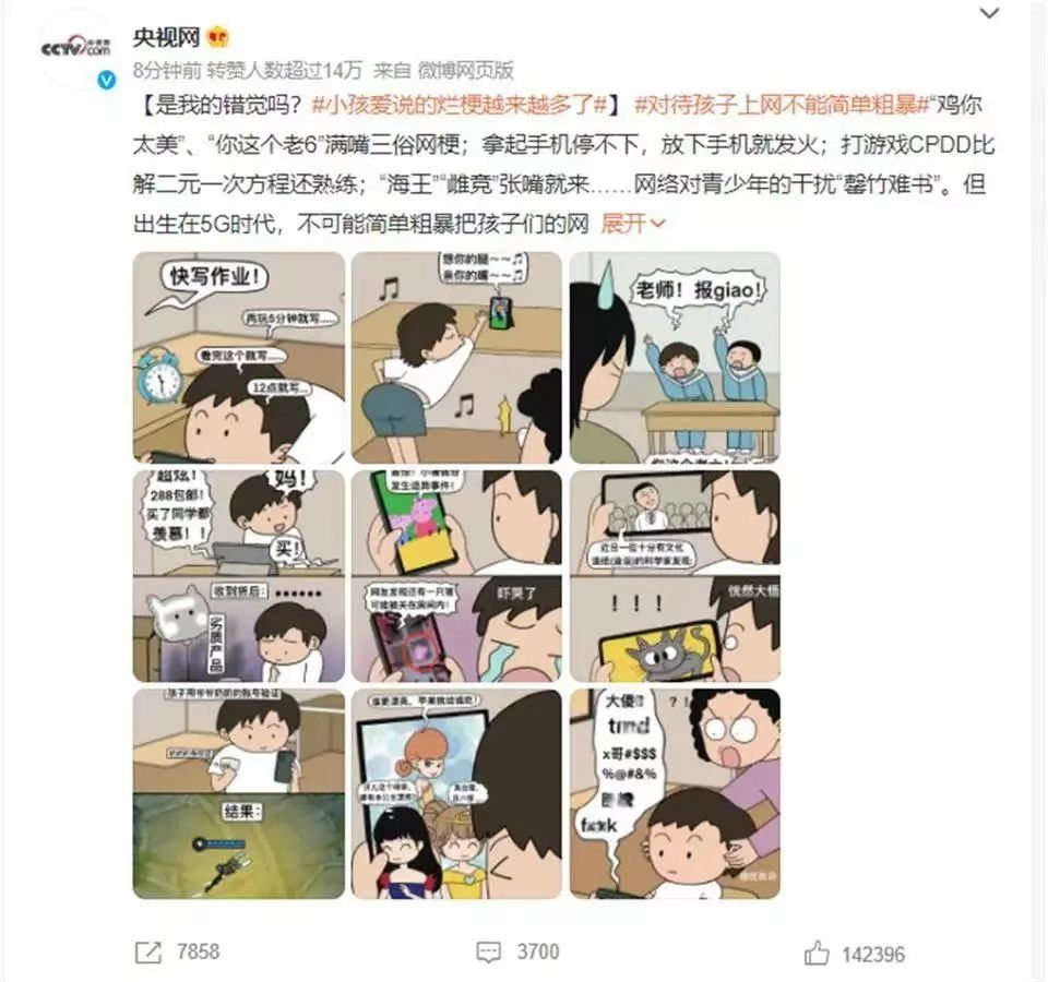 然而儿子正在经历的却是他必须要面临的问题,相比于我们那个时候,他的年龄更小,面对网络流行语时还没有太多的分辨能力。
