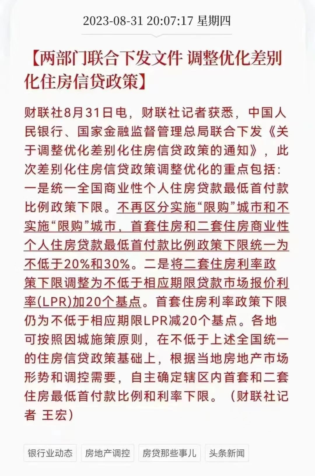 首付降低、利率降低,最最重要的就是出了“认房不认贷”的政策。