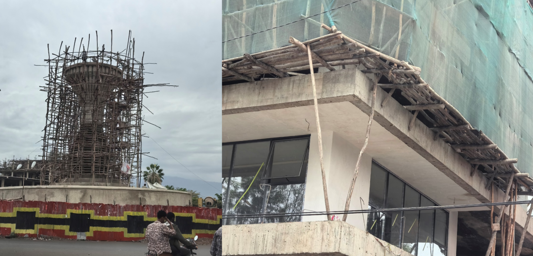 此外就当地的建设水平来看,他们现在使用的脚手架都还是一些木质脚手架。
