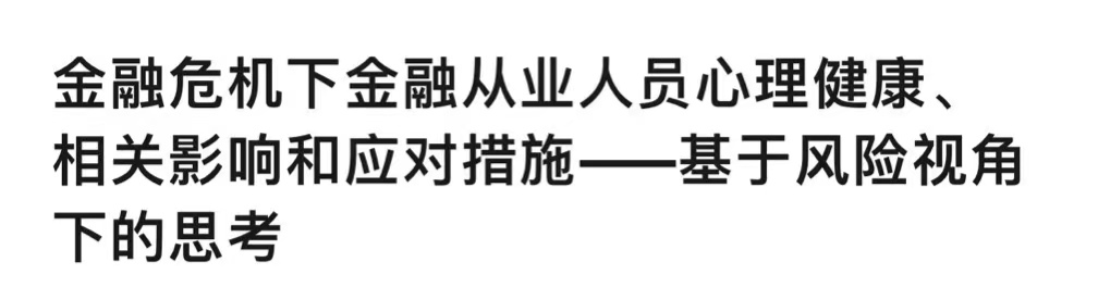 最近金融圈很重要的一个话题,是关注金融从业人员的心理健康问题。