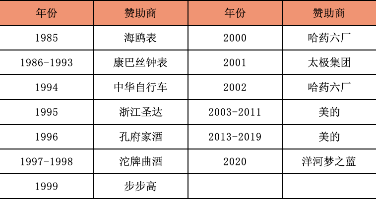 其实看看每年的赞助商的名字,也可以让我们看到时代的变迁。