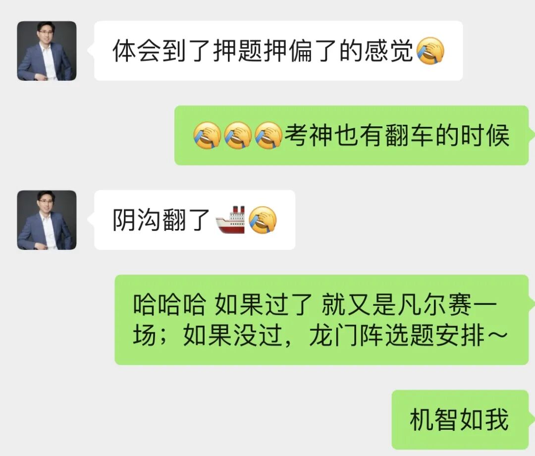 那时候还在和小助理盘算:这次考试没过,刚好可以出一篇自省的文章,告诉大家备考要趁早,一定别押题。