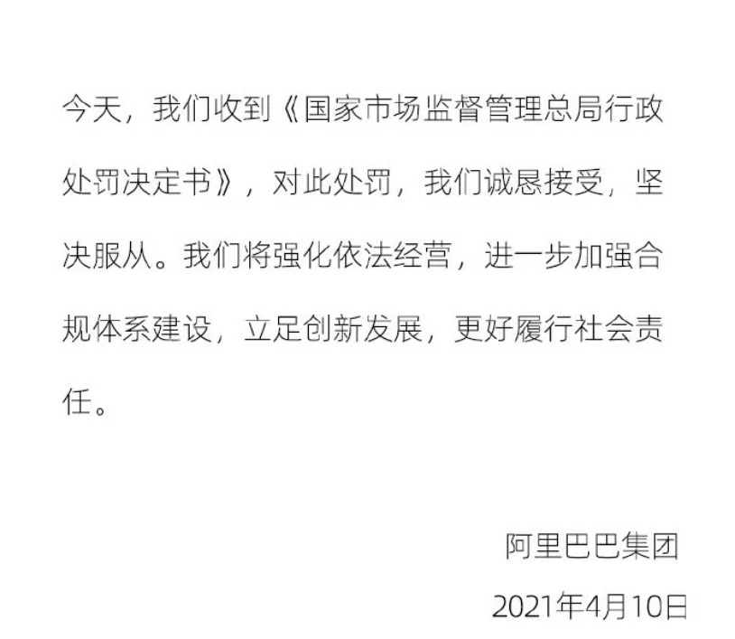 昨天发生了一件事,就是阿里巴巴被罚款182亿,朋友圈一下子炸锅了。对比一下前几年阿里对监管的态度,再看看昨天的发声,不得不说,马已经服。
