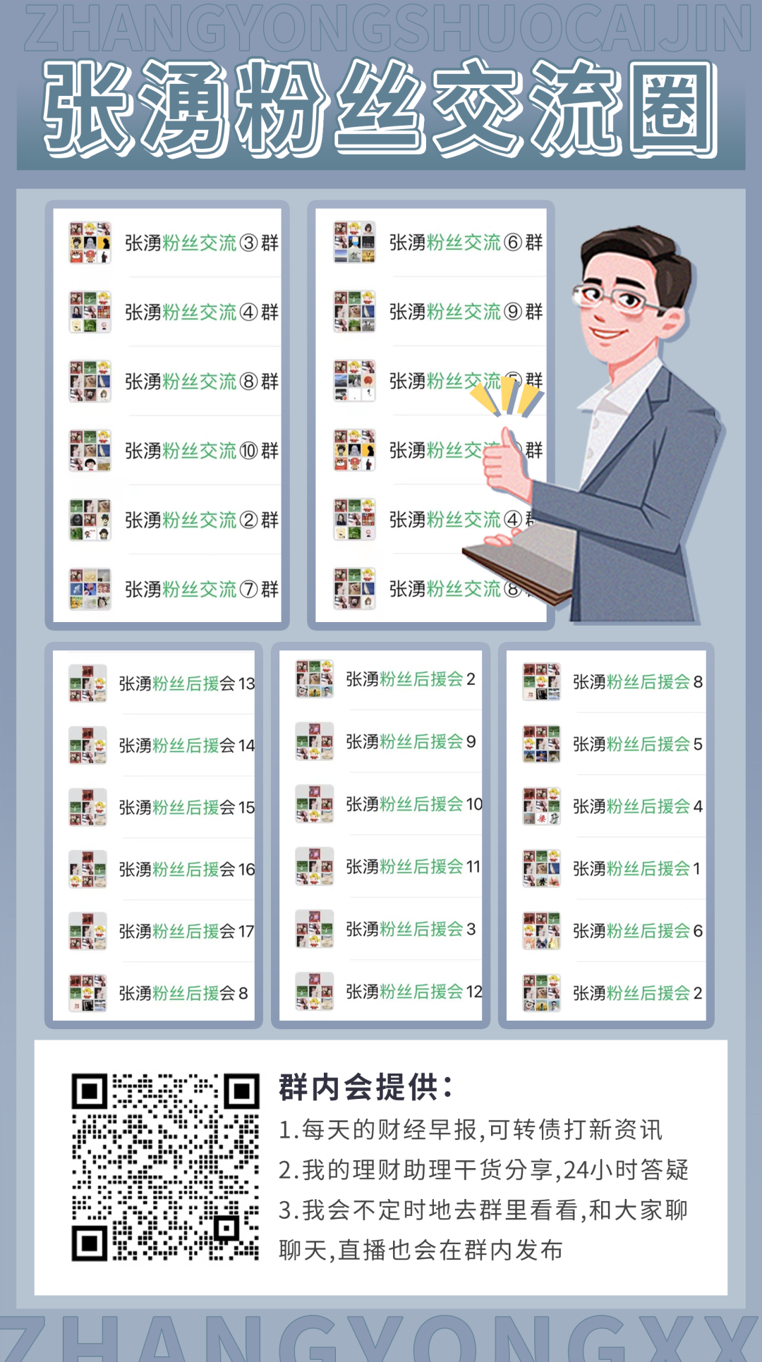 一直有伙伴说希望一起交流,于是我们成立了【张湧说财经粉丝交流群】。