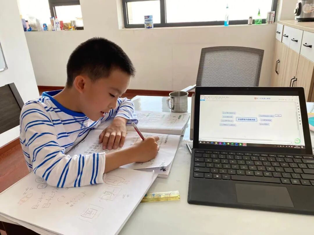 在闭关期间,看到我天天埋头苦学,我儿子也会坐在旁边写作业。写完作业,有时他会拿上一本书,默默地来到我旁边陪伴我。
