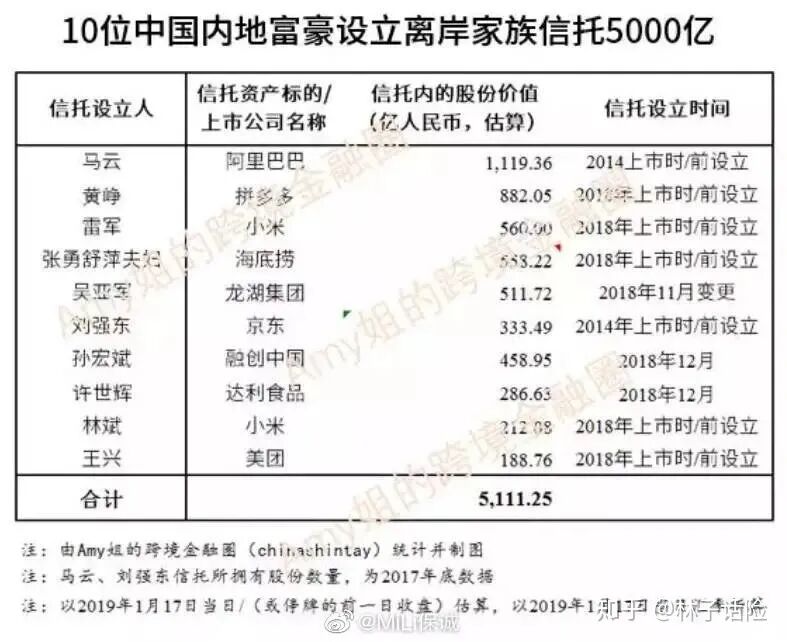 10位中国内地富豪设立离岸家族信托5000亿 图源知乎