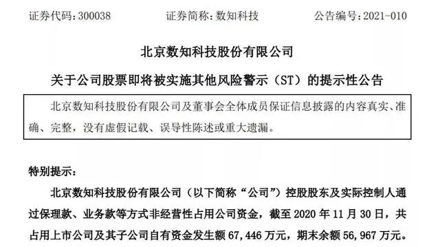 今年1月,数知科技因为股东和实控人没有解决非经营性占用公司近16亿的资金,股票跌停并停牌,复盘被ST,股东乱来,却让5.8万股民血亏。