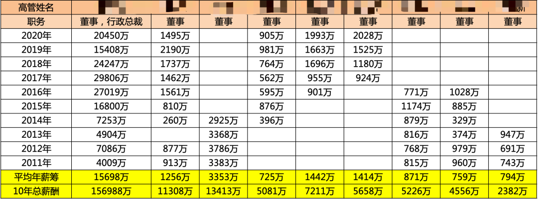 我查了一下资料,国内排名前10位的房地产公司,每年支出的薪酬总额平均超过了100亿元,其中恒大、碧桂园的薪酬总额超过了200亿,平均到每位高管头上是什么数字各位自行脑补。