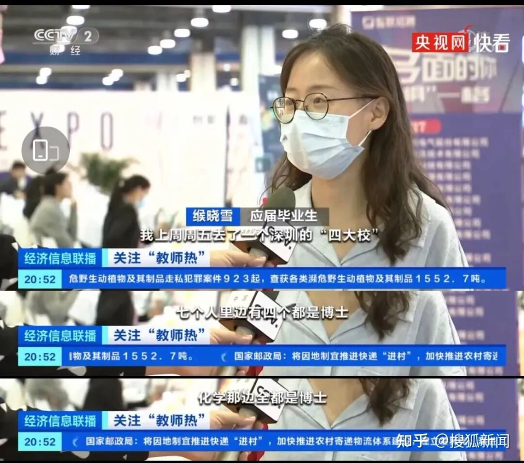 其实,最近我一直在关注一则新闻:有个北师大的硕士研究生到深圳的某个重点高校去应聘教师,到了发现他应聘的生物学岗位进复试的有7个人,其中4个人是博士。他还听说,这还不算最夸张的,化学那边都是博士。
