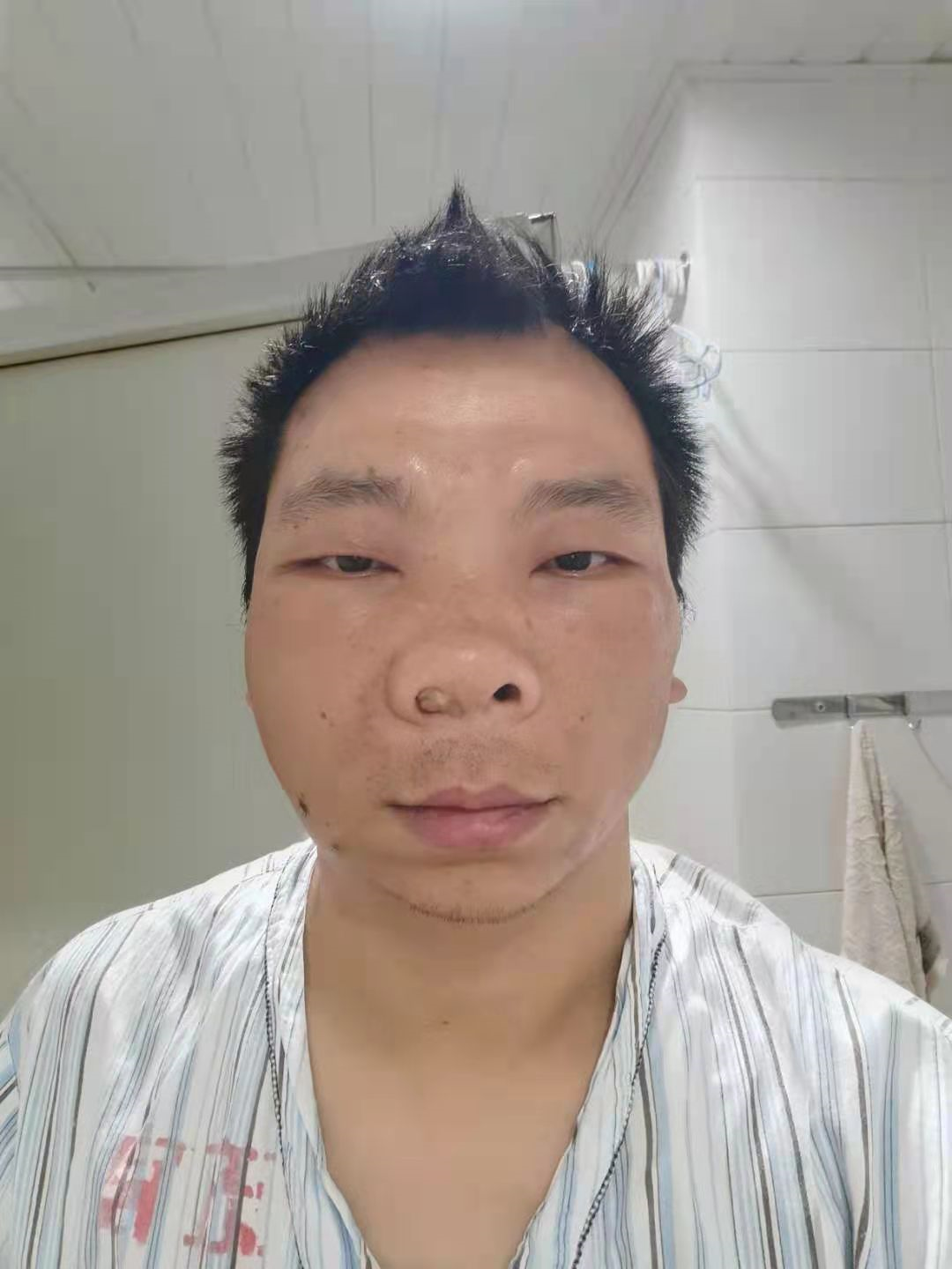 现在的他在药物的作用下全脸肿大,判若两人?不禁让人泪目。