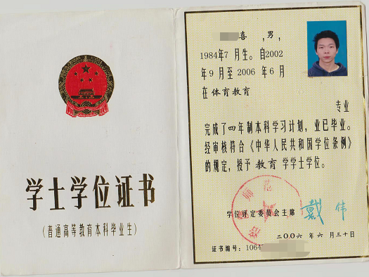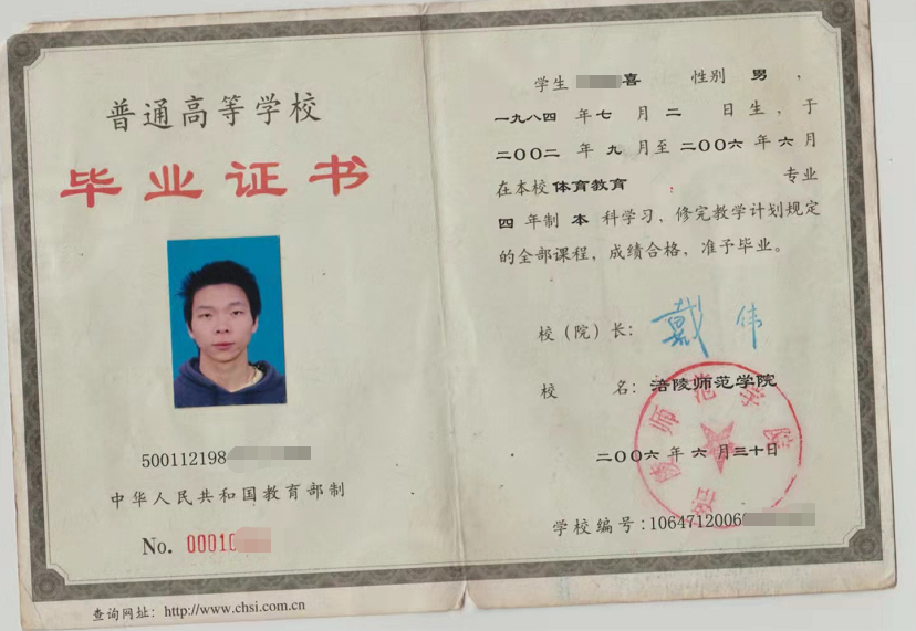 喜哥的毕业证书和学位证书