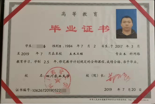 因为他本科是体育教育专业,算是跨行进入建工,于是又在2019年自学拿下了四川农业大学土木工程专业的本科证。