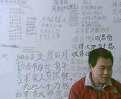 她把儿子关在家里看书,不让儿子出门,同学打来电话就说不在家。在魏永强卧室的墙面,曾雪梅写上“睡觉之前看此墙”,把公式和知识点都写在墙上。