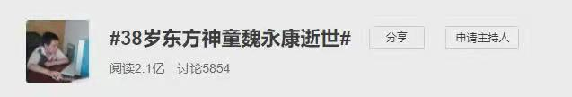11月9日,现年38岁的魏永康因突发疾病,英年辞世。
