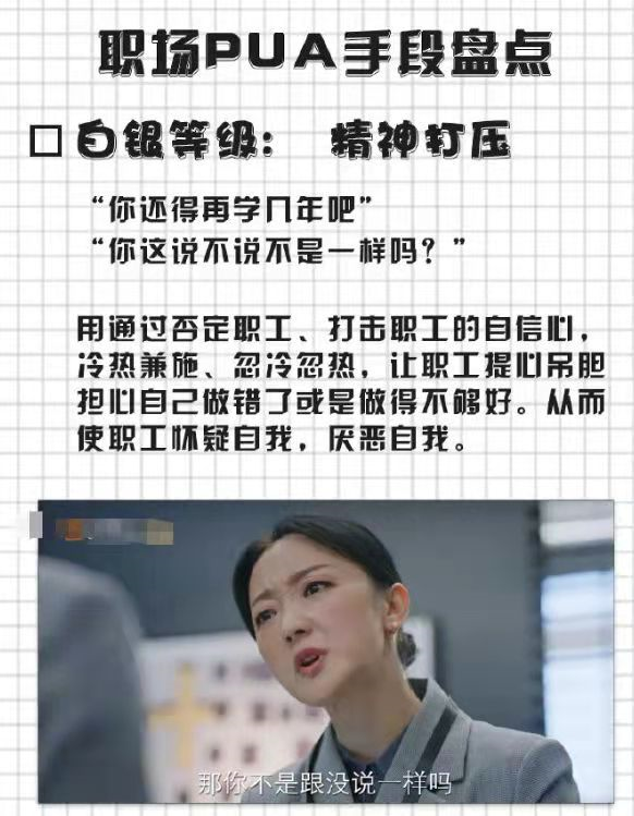 所谓职场PUA,就是无论做什么领导都不会给到正面反馈,用高人一等的姿态不断地打压,将你的一切统统否定之后,再打着“对你好”的名义,用“未来”画个饼。