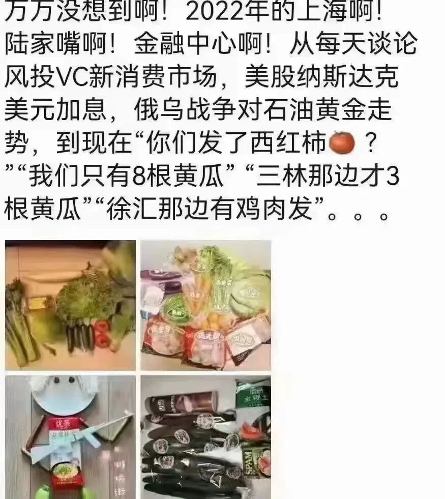 周二的文章里我们也分析了,疫情后的上海真的就是这么一个状态。让人没想到的是,这个时候,蔬菜竟然变成了硬通货。