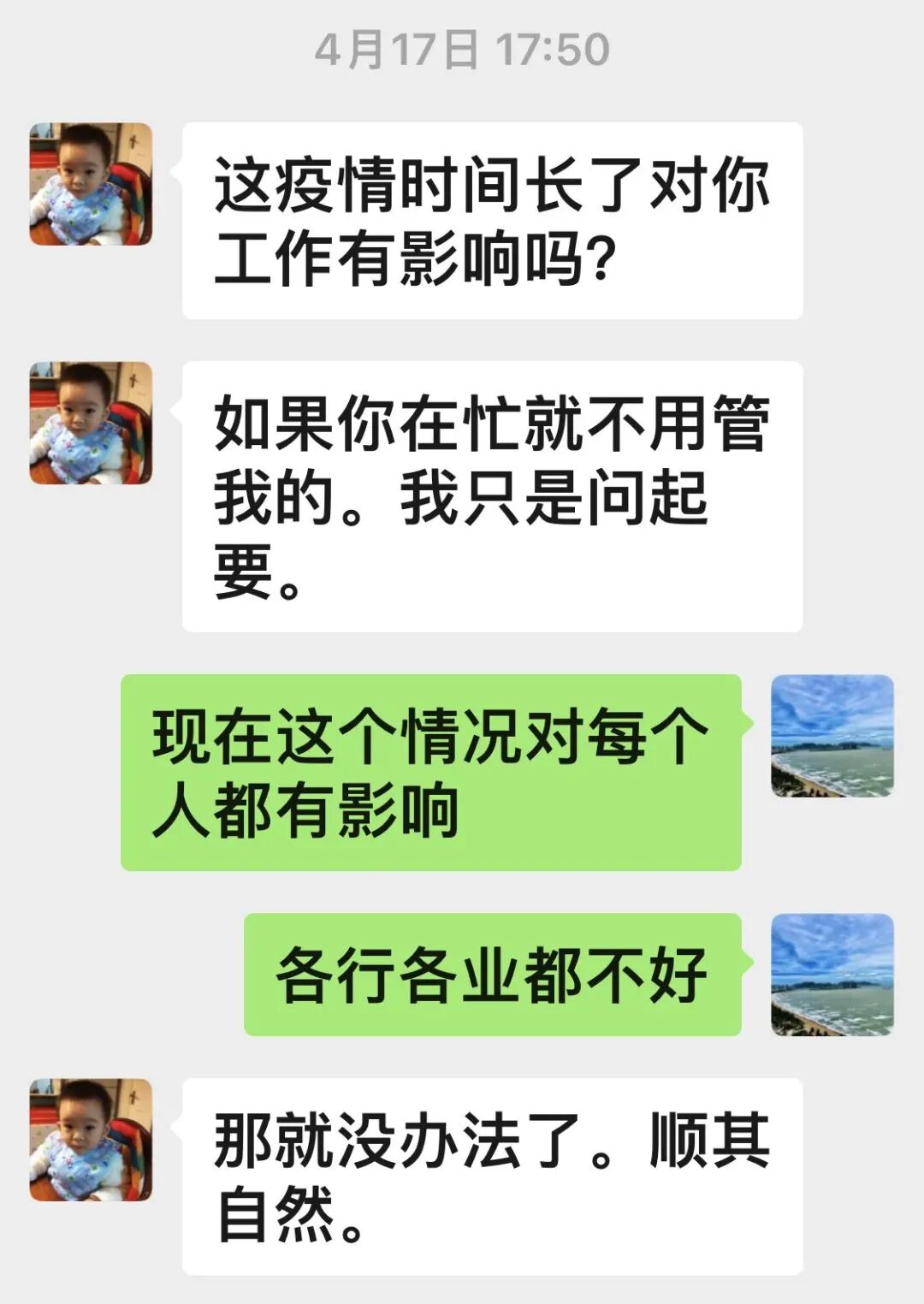 当时他用词特别谨慎地问我:这疫情时间长了对你工作有影响吗?