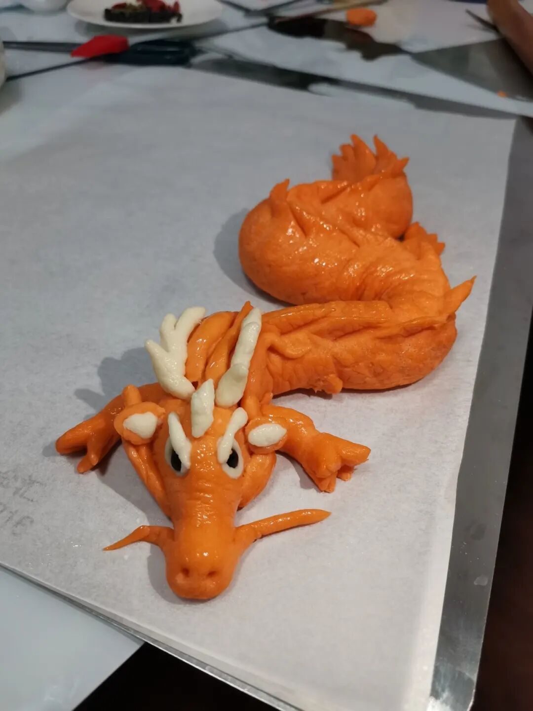 于是全家齐上阵,媳妇和面,我来造型。为了不落人后,还专门到抖音上去查了各种图形,最后愣是捏了一条龙。