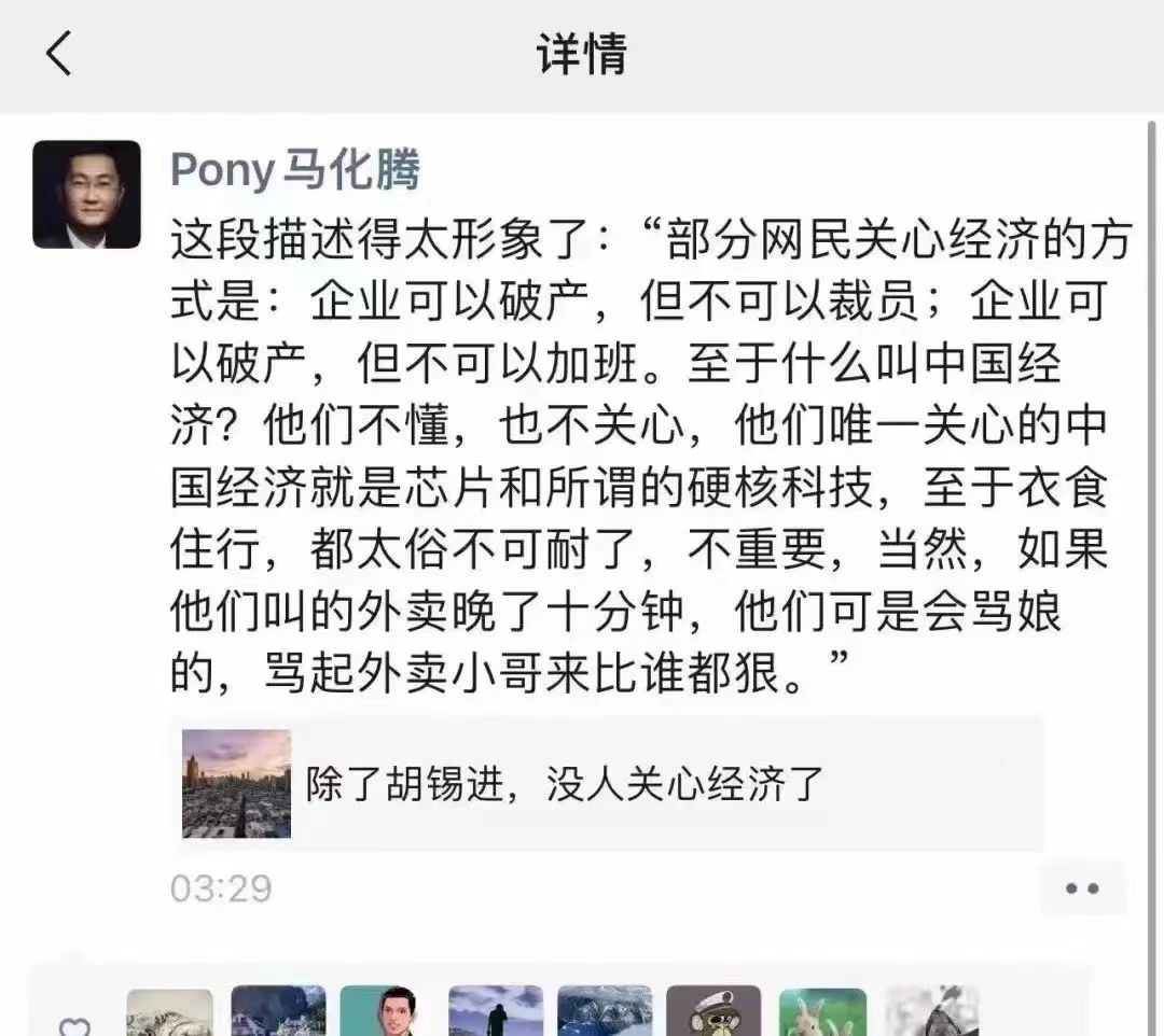 大意是除了某位主编,没人再关心经济了。大家都只关心衣食住行,企业可以倒闭,但不能裁员;可以破产但不能加班……