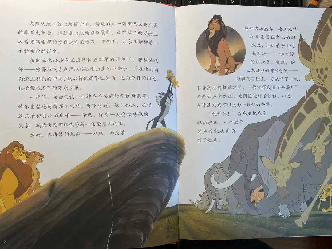 最终,我俩淘到了一本根据迪士尼原版狮子王动画制作的精美绘本。