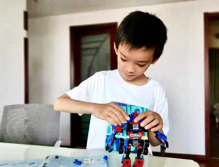 就是抓住了他这个“小小的成就感”,在六一那天我们又给他买了一套难度较高的变形金刚作为节日礼物。