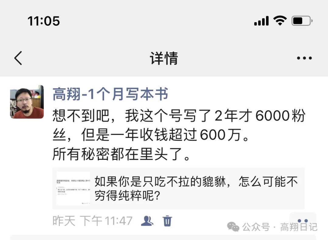 其实关于公众号,我说过很多遍,不建议人写公众号。如果你真有那个本事,不如搞视频。视频对人的信任感加持,要比公众号的文字强很多。