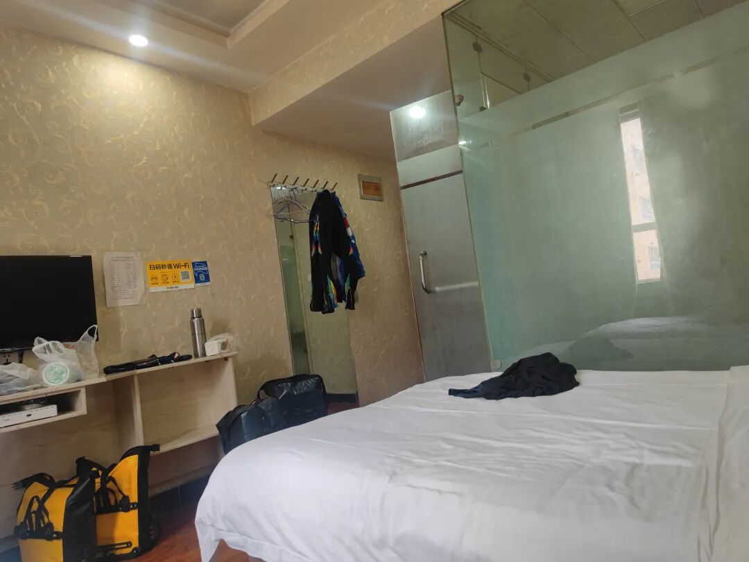 空调窗里的凉风嗖嗖的吹着,横扫全身,心想这样下去一宿就完蛋了,赶紧找服务员想办法,11点多的时候,他们拿了一个垃圾袋,一卷胶带,封在了出风口上。