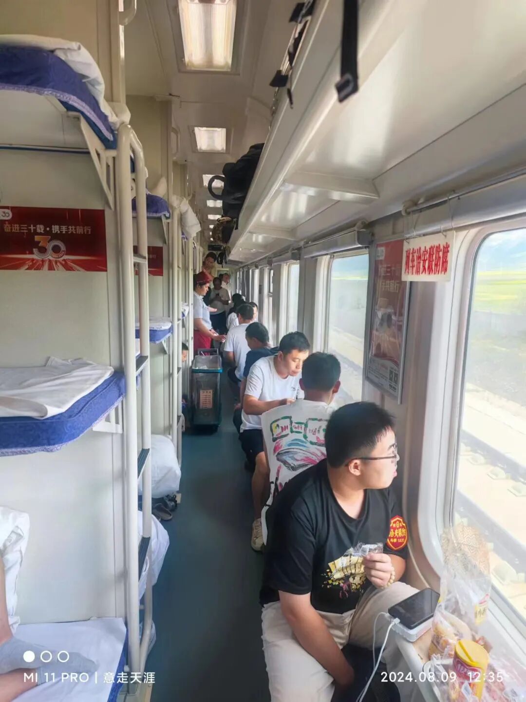 老韩住我邻车厢,他是下铺,过去聊天。