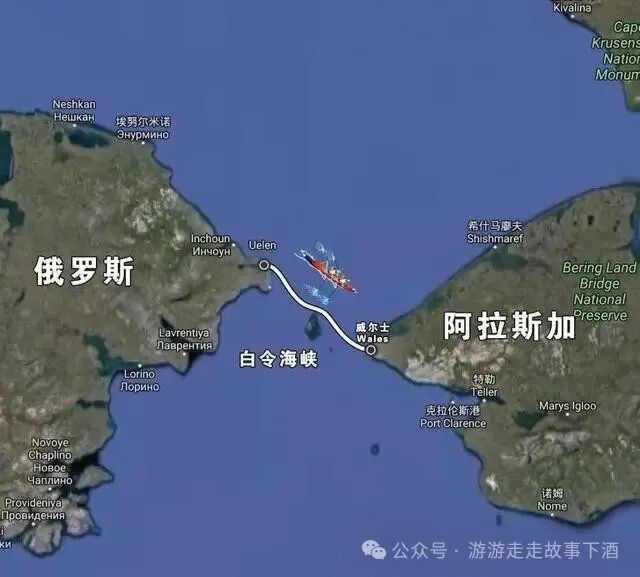 白令在此处既没有看到美洲的海岸线,也没有看到向西急转的亚洲海岸。