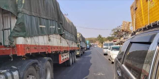 曼德勒省彬乌伦万温村 X-ray检查站处,因检查较为严格,致使上百辆车被堵。