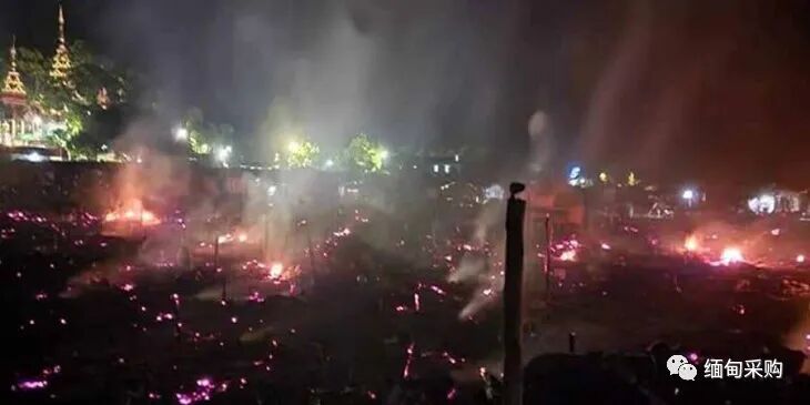 当地时间5月9日凌晨1时许,缅甸西部若开邦皎道镇Kyauktaw的马哈穆尼Mahamuni难民营发生大火。大火持续了两个多小时,直到凌晨3时许才被扑灭。