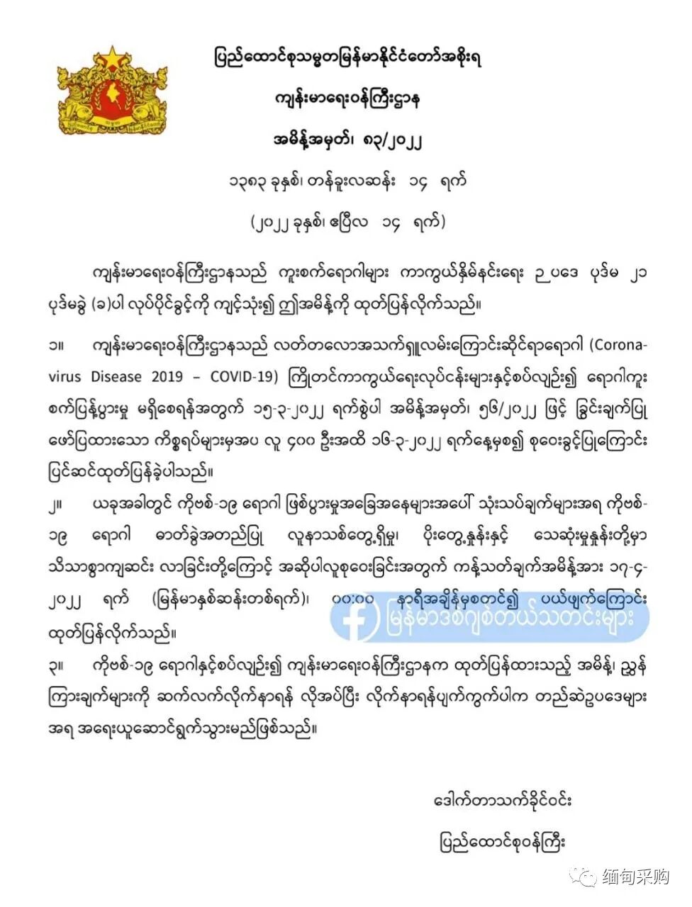 本公众号"缅甸采购"所推送内容均源自网络,不代表任何政治立场,仅供阅读、欣赏!我们对文中观点保持中立,对所包含内容准确性、可靠性或完整性不提供任何明示或暗示的保证,并不对文章观点负责。版权属原作者。如有侵权,请联系我们及时修正删除。微信号: t990528